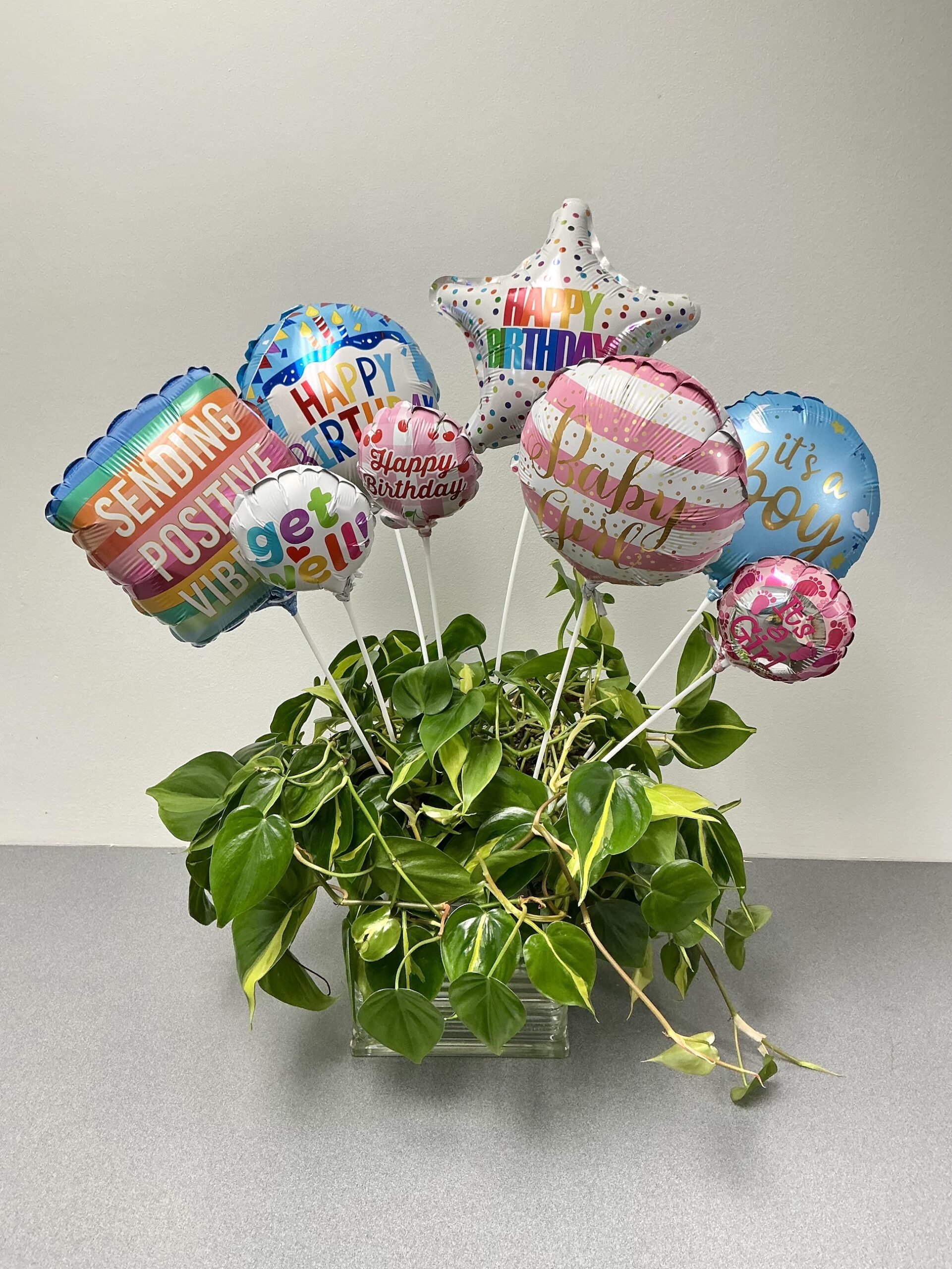 Add a pop of joy to your floral or plant arrangement with a charming air-filled Mylar balloon for any occasion!