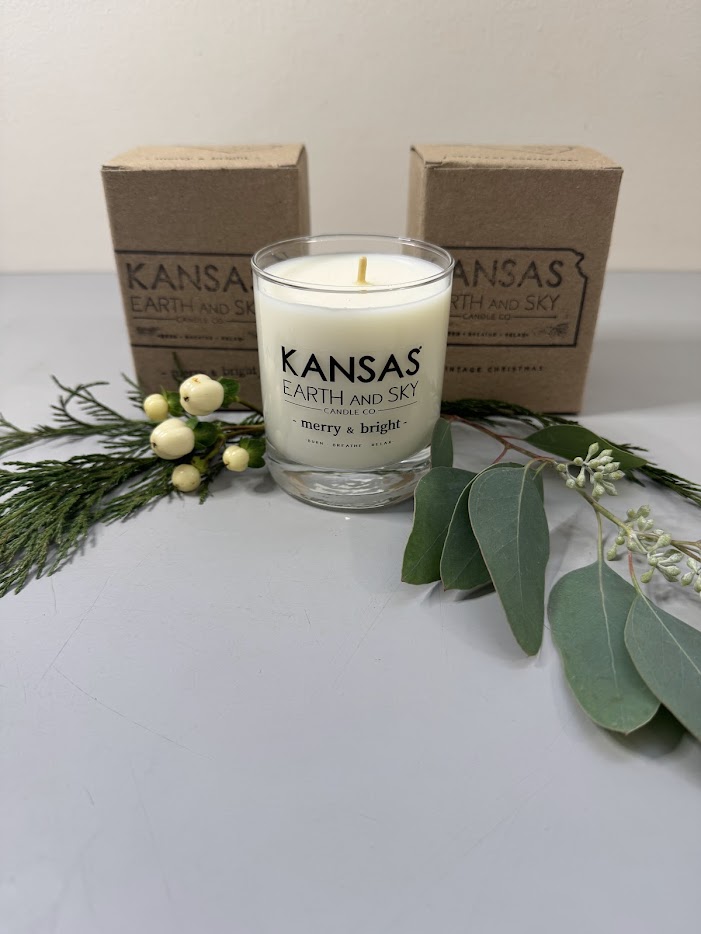 Made in Ellinwood Kansas! 5 oz Soy Candle. Choice of Vintage Christmas or Merry & Bright.